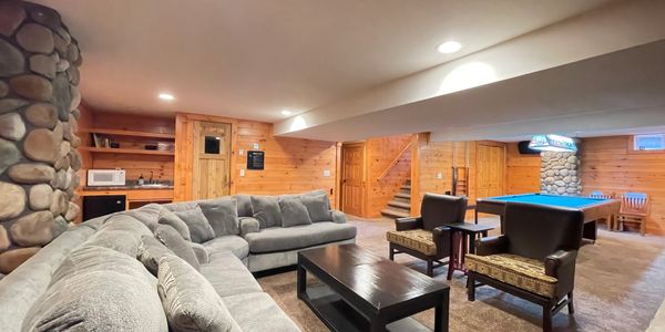 Spread out to the Lower level with an additional 8 bedrooms and 2.5 baths including a family room with pool table. The cozy living room has a stone wood burning fireplace and a 12 person dry/wet Indoor Sauna. All bedrooms offer Queen or King sized beds. Flat screen TV's are in every bedroom and both living rooms with Cable TV and Wi-Fi.